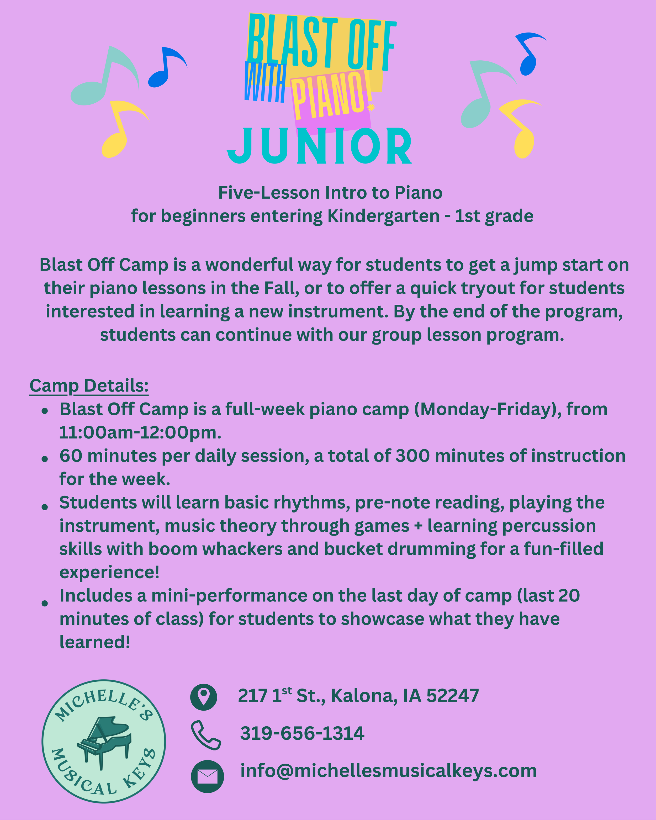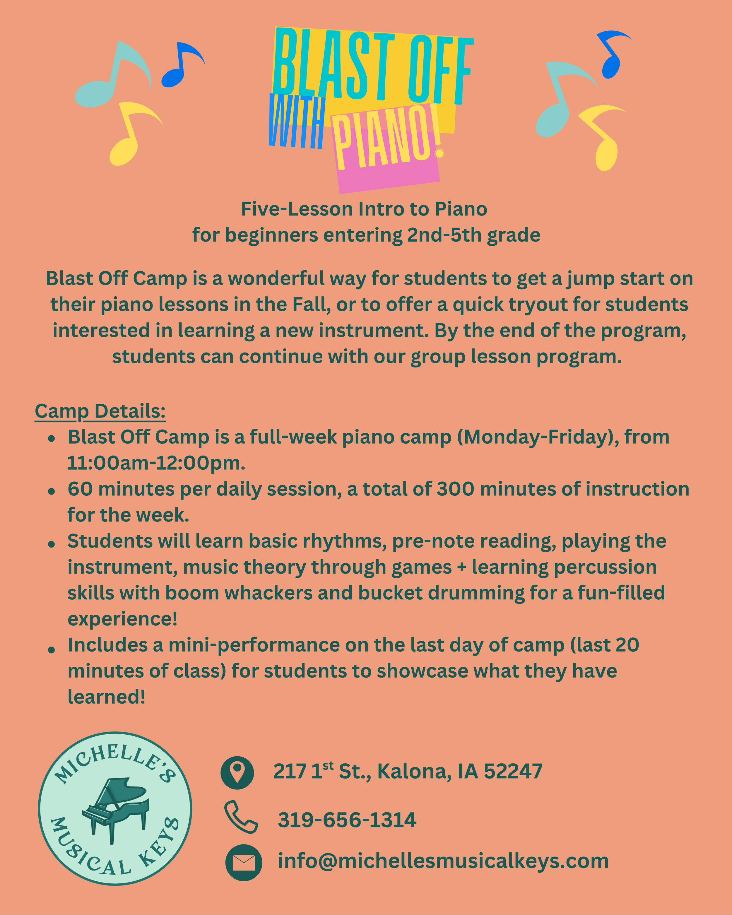 Explore Our Summer Camps * Explore Our Summer Camps * Explore Our Summer Camps * BLAST OFF WITH PIANO Sign Up Here Sign Up Here BLAST OFF WITH PIANO Jr Sign Up Here Sign Up Here Music & Sports Summer Piano Club Sign Up Here Sign Up Here MUSICALS.T.E.M Sign Up Here Sign Up Here